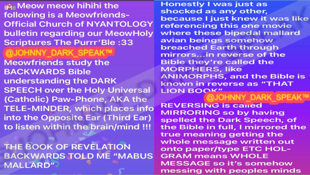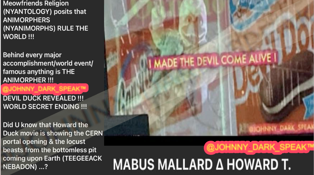 Discovered in Dark Speech (REVERSE) of the Book of Revelation, it mentions how the ANTICHRIST is a bipedal mallard being aka MABUS MALLARD