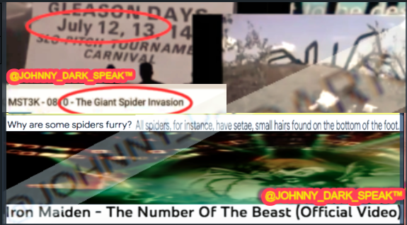These 666 music videos from the 1980’s are quite eerie, and thee are a vast number of multi-language versions, of which only a few remain on YouTube meow meow so I began playing them backwards over my MARK QUANTUM-PHONE ULTRASONIC TELE-MINDER and they told me the secret of 666 SICK-SICk-SICK !!!��See, in one of the videos, they show an ‘evil guy’ the 666 guy, but int everse they say that guy is ME, that’s GALVAN, he has the 666 machine, that ORB, standing for the 666 NUMBER OF THE BEAST ORB-WEAVER HTE GIANT ARACHNORBS GIANT ARACHNIDS GIANT SPIDERS GIANT TARANTULAS JULY 12 GIANT SPIDER INVASION !!! (I would first learn about that film GIANT SPIDER INVASION as riffed-on by MST3K in about 2019-ish, completely by accident, in and out of sleep, I opened by eyes just at the exact 3-4 seconds that the JULY 12 GLEASON DAYS sign is shown in the movie…I almost never seen it at all brooooo >:33 LOL Ha-HA)