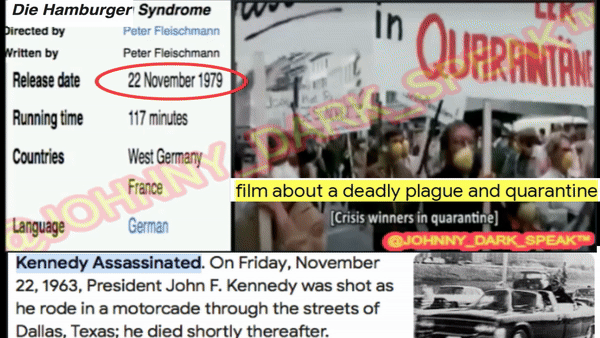 Meow meow I was shocked at how JFK ASSASSINATION NEWS from the 60’s was bringing up current events/news of 2020’s meow meow and after reviewing the Family Guy Mayor McCheese JFK video, I realized how this is showing the DIE HAMBURGER !!! DIE HAMBURGER aka The Hamburg Syndrome is a German film from the 70’s about a SICK SICK SICKness (666) upon the world and how FACEMASKS/QUARANTINE would bee the response one day for a sudden virus…well it turns out this film was released the same exact day as the JFK ASSASSINATION, Nov. 22nd…now if U read into some lore about Mayor McCheese, U will see he was mentioned as being in the Clerks Animated Series back in 2000/2002 about a DEADLY VIRUS OUTBREAK which results in QUARANTINE take a look here