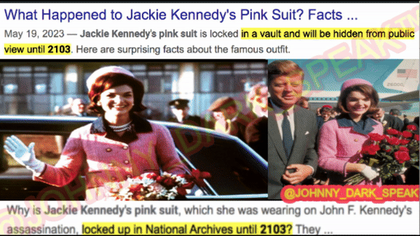 Meow meow I thought maybe it had to do with their pink outfits, just on the outset with no further data, but then there appeared something interesting…I searched Jackie Kennedy Pink Suit and what came up is that the pink suit is locked away until 2103, which is such a futuristic date set similar to Space Channel 5 in 2477 with pink dress wearing news reporter ULALA…