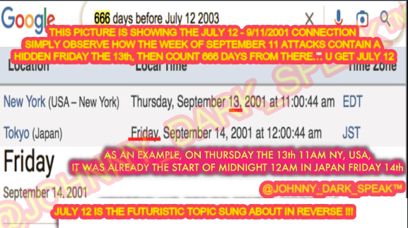 666 & July 12th connected to 9/11/2001 by Friday the 13th timezone