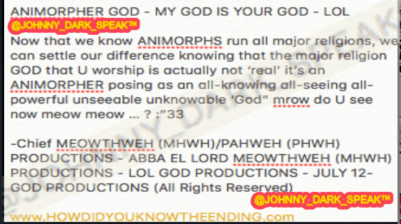 BRINGER OF THE ANIMORPHS – BIPEDAL ANIMAL MORPHERS AS GODS – NEW THOUGHTS FOR THE NEW MAN IN A NEW WORLD – by Johnny Dark Speak