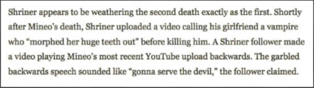 Who is Sherry Shriner…? Who was Steve Mineo…? Haven’t you heard about the murder case yet …? It was covered by the VICE network in the year 2021, with a 6-part documentary titled THE DEVIL YOU KNOW – SHERRY SHRINER … I was even asked in the year 2020 by a representative of the show to answer a set of questions regarding my time in the SHERRY SHRINER CULT … but guess what …? The Dark Speech told me NOT to answer the questions, not until JULY 12 would become EXTRA FAMOUS TV WORLD NEWS, and that day came on July 12th, 2024 when TRUMP SURVIVED JULY 12th !!! Meow meow the Dark Speech psychically knew that I could use those people’s request at a later time to my ultimate advantage by withholding my answers and only giving a response when July 12th became world news in the future !!! NOW is the absolute BEST time to bring up those idiots questions and make ppl feel so neuro-dumb with July 12th SUPERBUG 666 neuro-reverse information >:33 muahahaha